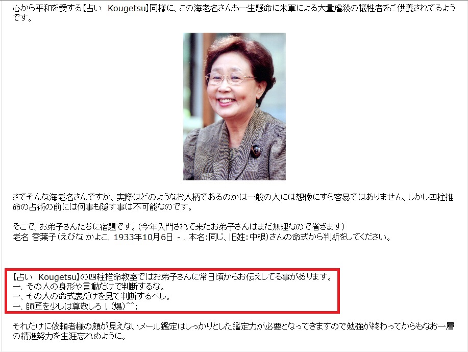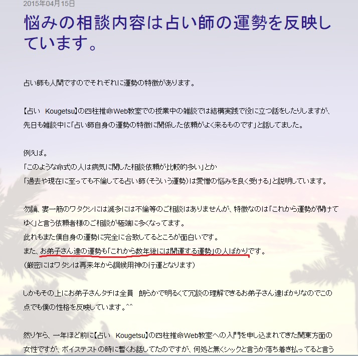 私は3年間授業受けたので知ってますけど。この人は、四柱推命の授業もそこそこに、